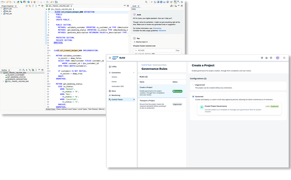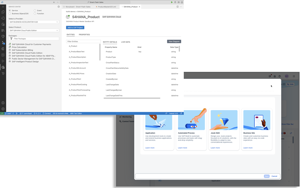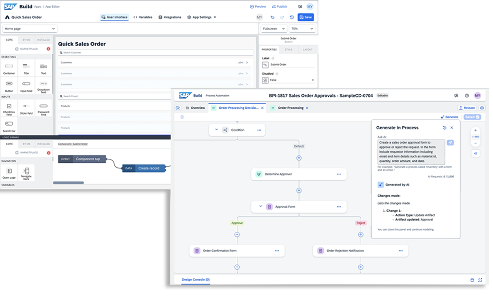 Combina herramientas de creación de aplicaciones, automatización de procesos y desarrollo asistido por IA para acelerar la entrega de soluciones dentro del entorno SAP.